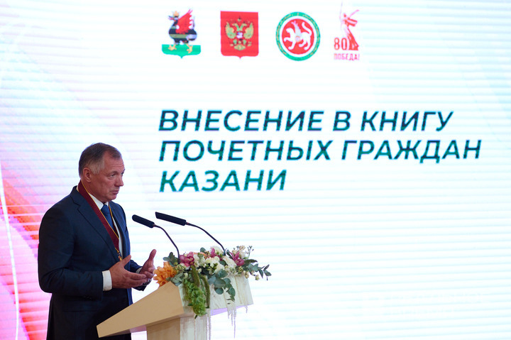 В здании Казанской ратуши прошла церемония присвоения звания «Почетный гражданин Казани», а также «Предприятие и гражданин, внесенные в Книгу почета Казани». Среди награждаемых — зампредседателя правительства России, уроженец Казани, бывший министр строительства Татарстана Марат Хуснуллин, глава Госкорпорации «Ростех» Сергей Чемезов, а также депутат Государственной думы РФ Ирек Богуславский.
