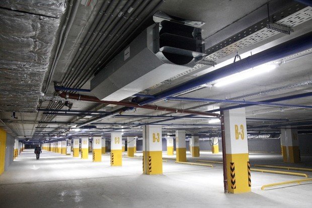 В паркинге на НКЦ «Казань» применены самые современные технологии для обеспечения безопасности людей. Одна из главных технических новинок — общеобменная вентиляция с системой струйных вентиляторов. Помещение подземной парковки не загромождено объемными воздуховодами. Струйные вентиляторы в случае необходимости создают бездымную зону около эвакуационных выходов по всей высоте помещения. А лифты паркинга могут работать во время пожара и позволяют перевозить противопожарные подразделения.