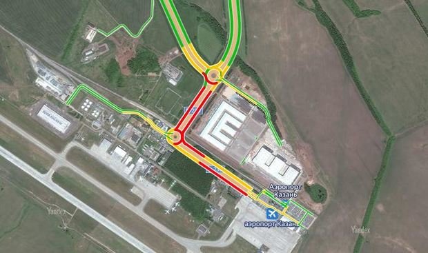 11.14 Вот такая сейчас загруженность дорог в районе «Казань Экспо» по данным сервиса «Яндекс».