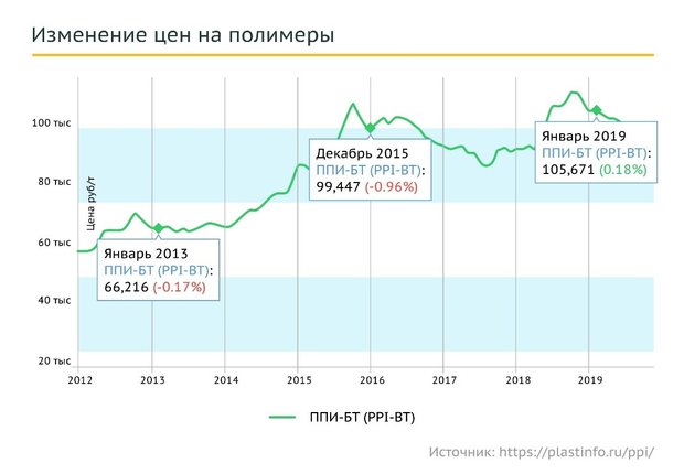 Отметим, что со второй половины 2018 года также снижались мировые цены на поликарбонаты. Стабилизация произошла лишь к осени 2019 года.
