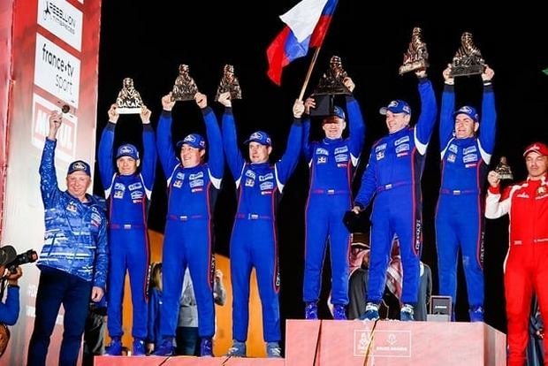Очередной триумф татарстанской команды «КАМАЗ-мастер» на ралли-марафоне «Дакар». Сразу две ступени пьедестала почета заняли наши спортсмены. «Золотого бедуина» завоевал Андрей Каргинов, серебряного — Антон Шибалов.