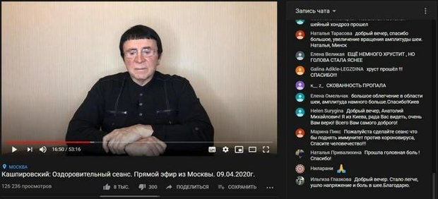 — Когда общество парализует страх, естественно, на первые позиции выходят шарлатаны. В обществе начинают блуждать всякие секты и разного рода мистические, фантастические идеи. Это всегда было, есть и будет. Так было и во время великой чумы в Европе, так бывает во время войн. Психика людей не выдерживает напряжения страха, поэтому люди обращаются к самым извращенным радикальным формам мистицизма и спиритуализма.