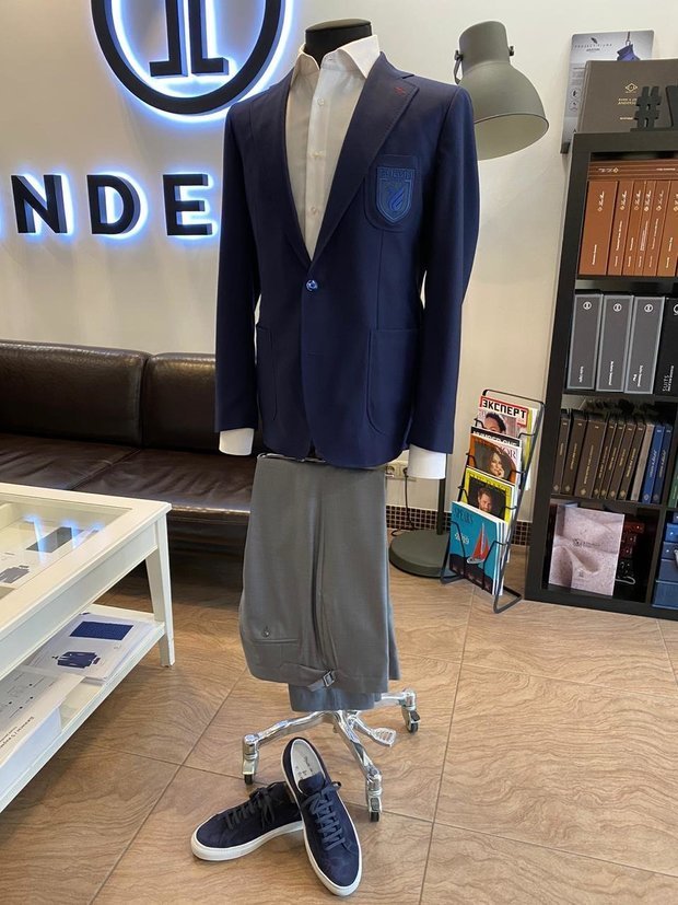 Еще на прошлой игре в Екатеринбурге главный тренер «Рубина» Леонид Слуцкий впервые в сезоне предстал перед широкой футбольной публикой в пиджаке, а не в спортивном костюме. Как стало известно «Реальному времени», специально на игру с «Локомотивом» костюм для казанского коуча сшил татарстанский предприниматель Адель Ягудин, который подобрал вариант с темно-синим пиджаком, на котором виднеется эмблема клуба, и серыми брюками. Вместо ботинок — классические кеды под цвет пиджака. Слуцкий в таком наряде смотрится очень гармонично.