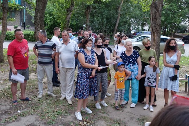 К назначенному времени на пятачке между хрущевками собрались порядка 10 жителей, чуть позже, в процессе, начали подтягиваться и остальные. Перед началом кто-то уже давал интервью на камеру. Галина Ермолаева высказывала свое недовольство тополями — многие из них, по ее словам, уже старые и опасны для людей — и переживала за сохранность во время стройки недавно посаженных молоденьких лип и рябины. Взамен вырубленных старых она предложила еще высадить новые. Впоследствии выяснилось, что Галина Сергеевна живет здесь уже 17 лет, 10 из которых она была председателем ТСЖ дома.