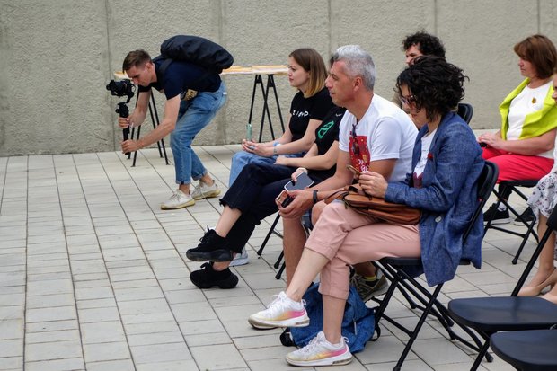 Самая дальняя точка отдана лекторию. Весь день ожидался дождь, однако погода благосклонна к науке. Ваш автор — Радиф Кашапов — начинает работу площадки с рассказа о музыке Беларуси. Как выяснилось в ходе подготовки, любой мало-мальский меломан знает об этой теме немало. Навскидку вспоминаем самых попсовых: Тима Белорусских, IOWA, «Ляписа Трубецкого», ЛСП, Макса Коржа, «Би-2», «5diez», «Кассиопею», «Аддис-Абебу» и, конечно, героев «ТикТока» «Молчат дома», благодаря молодежной сети ставших известными по всему миру. Белорусскую «мову» заменяет татарская — замдиректора Камаловского театра Инсаф Хамитов ставит тяжелые грампластинки довоенной эпохи на 78 оборотов, впрочем, играет и более «свежая» музыка — скажем, открывается сет песней «Татарстан — минем республикам» Ильгама Шакирова.