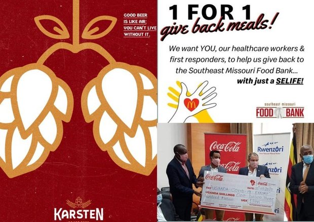 Лабрам Мусах, национальный координатор NCD Alliance в Гане, рассказывает, как производитель пива Guinness Ghana breweries пожертвовал местному министерству информации крупную сумму денег и 1,5 тысячи банок «Гиннеса», чтобы «поддержать тех, кто на фронте борьбы с пандемией». Вдобавок местное министерство энергетики организовало событие для прессы, чтобы принять пожертвование в фонд борьбы с COVID-19 от компании-организатора азартных игр в онлайне Betway. Пирри Кук из NCD Alliance описал «хищнические маркетинговые практики, нацеленные на молодежь», и «пожертвования от производителей алкоголя и фаст-фуда наиболее уязвимым группам и детям».