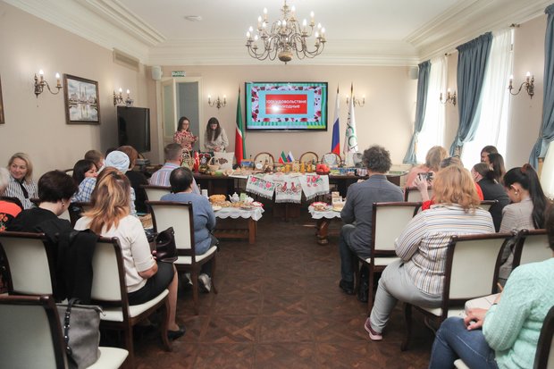 Первой фишкой презентации, проведенной накануне в Госкомтуризме республики, стала «трогательность» — причем в буквальном смысле слова. В зале, где собрались гости, предложено было не только посмотреть, но и пощупать, и даже попробовать туристический Татарстан на вкус. Дело в том, что по замыслу организаторов, районы Татарстана, которые входят в программу «1001 удовольствие за выходные», должны были показать, что же особенного можно из этой поездки привезти. Многие не мудрствовали лукаво и привезли хлеб, чак-чак, баурсак, яблоки и изделия народных промыслов с татарским колоритом. Камско-Устьинский район привез на презентацию сыры местного производства в нарядных коробочках. Сабинский район угощал гостей чаем — оказывается, там находится производство ферментированных чаев с разными ароматами (удалось попробовать смородиновый и грушевый, остальное Сабы оставили для тех, кто сподобится до них все-таки доехать). Чистопольский район привез иван-чай, а Елабуга — свои знаменитые пряники.