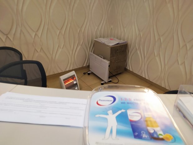 В большинстве офисов, несмотря на включенные обогреватели, оказалось довольно прохладно. Согреться по-настоящему корреспонденту «Реального времени» удалось, лишь зайдя в помещение медцентра «Айболит», расположенного в блоке «Д». В вестибюле клиники работали целых два обогревателя — большой конвектор рядом с креслами для пациентов и поменьше — за стойкой администратора. А руководитель сети медицинских центров «Айболит» Азат Рызванов сообщил, что сейчас во всех кабинетах, кроме обогревателей, включены еще и кондиционеры — на подачу тепла.