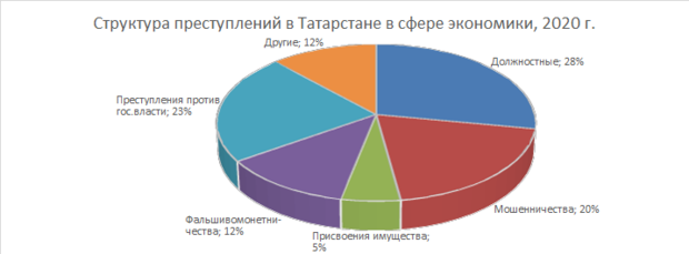 В Татарстане в минувшем году выросло число преступлений в сфере экономики на 22,2%, достигнув максимального показателя за последние 3 года — 2 717. При этом максимальный вклад в рост показателя внесли должностные преступления (758 или +45,5%) и преступления против государственной власти (616 или +42,9%). А вот количество присвоений чужого имущества даже несколько снизилось по сравнению с предыдущем годом (-15,4%).