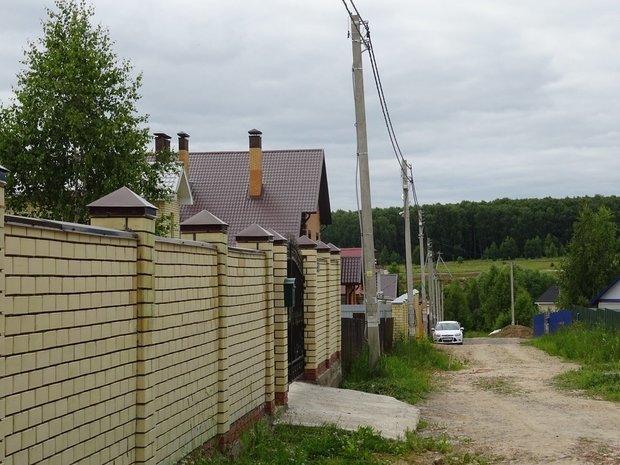 - Глухие металлические заборы — то, что мы привыкли видеть практически повсеместно, и не только в Татарстане, но и по всей России. Конечно, мы имеем в виду профнастил. Профильные листы могут быть окрашены с одной или двух сторон и, как правило, крепятся так, что лаги и опоры смотрят «внутрь». Снаружи мы видим суровую непроницаемую стену, вполне однородную. Да, это далеко не самый красивый вид металлического забора, но на красоту он и не претендует — зато надежно закрывает от посторонних глаз все, что происходит на участке, и это для многих становится основным фактором выбора.