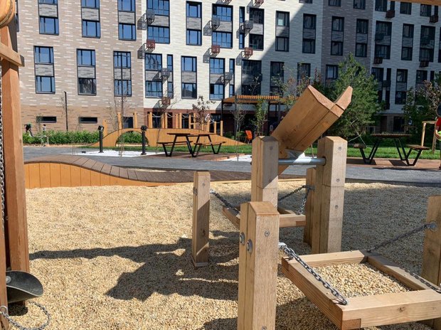 Детское игровое оборудование для каждого двора в новом проекте девелопера — ЖК «Мой Ритм» — проектировалось и подбиралось совместно с детскими психологами. Развитию коммуникаций малыши могут учиться не только в классической песочнице, но и с помощью специального оборудования для игр с пересыпкой — оно вовлекает детей в командную игру на длительное время, содействует эффективному общению.