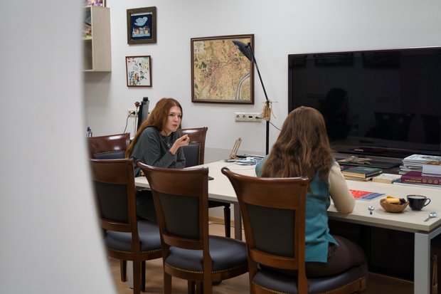 Встреча прошла в офисе Олеси Балтусовой, в начале разговора она напомнила, что 10 лет занимается историческим наследием в аппарате президента Татарстана. Ранее работала в сфере туризма и во Всероссийском обществе охраны памятников истории и культуры.