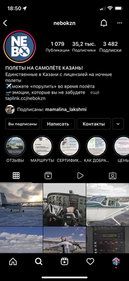 В 2014 году в Казани была основана компания «Летай с нами», главной сферой деятельности которой стала организация полетов на небольших самолетах над городом и окрестностями. Ее бизнес-аккаунт в сети Instagram* стал очередным участником спецпроекта «Реального времени», в рамках которого рекомендации по ведению профиля дают эксперты ведущих SММ-агентств Поволжья.
