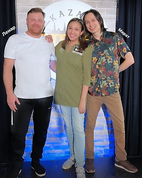 Среди стендаперов есть и девушки — Лия Морис приехала из Перми, а казанская блогерша Лейла Лерон попала в число участников совершенно случайно. Она активно шутит про своего отца, писателя Лябиба Лерона, чье настоящее имя — Лемон, а также сравнивает себя с сестрой Айсылу, у которой давно сложилась теле— и радиокарьера.