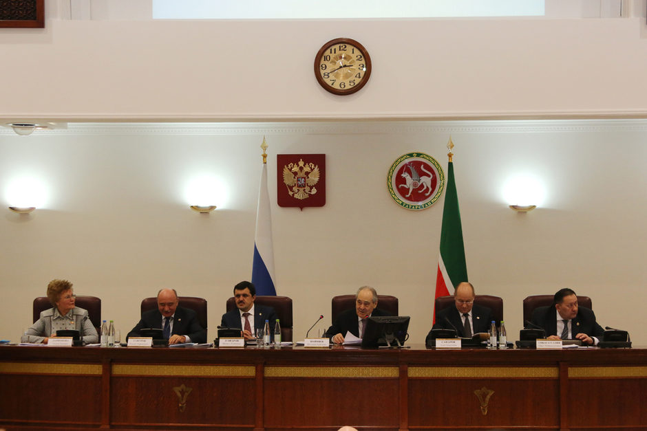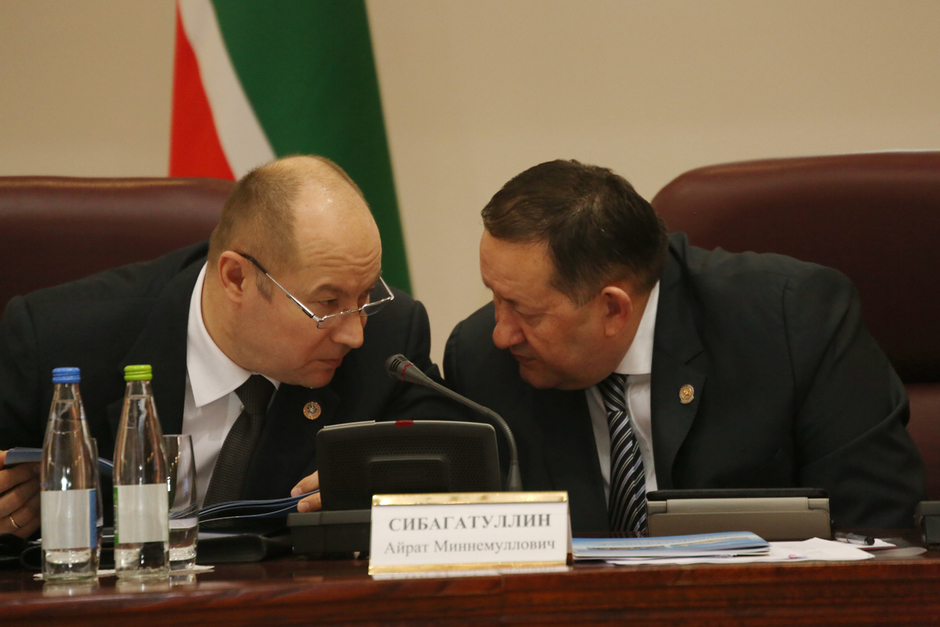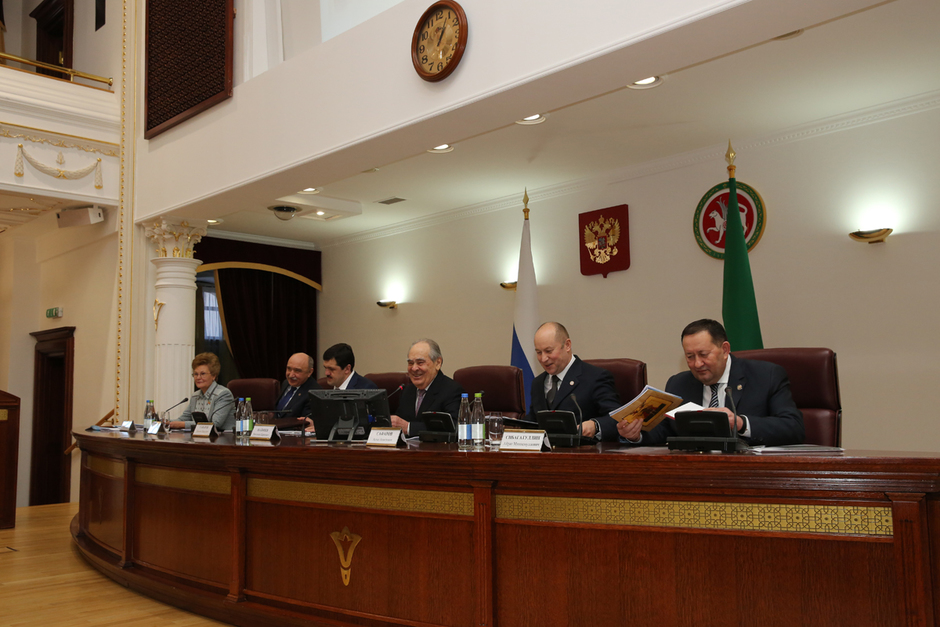 Когда в Кремлевский зал вошел государственный советник президента РТ, председатель фонда «Возрождение» Минтимер Шаймиев, присутствовавшие по традиции приветствовали его стоя. Минтимер Шарипович попросил всех вернуться на свои места и заметил, что в течение дня может проходить сразу несколько заседаний, так что садиться и вставать приходится много раз.