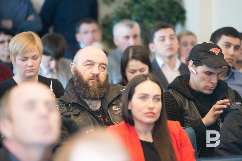 В конференц-зале отеля «Мираж» не было свободных мест и стен, возле которых бы не стояли люди. Мероприятие началось позже; как оправдался Демидов: «Мы не были готовы к тому, что у страны столько патриотов». В это время в зал вошла группа десантников, и самый старший из них шепотом поинтересовался у соседа: