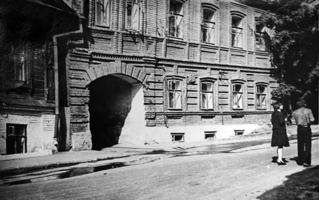 Перед этим домом располагалась мещанская усадьба XIX века Долгошеина. Стоящая в глубине многоэтажка, заслоненная новостройкой 2001 года, визуально явно относится к Марусовке, району дешевых ночлежек. Бывший сапожник Лупп Марусов начал дело с покупки дома на нынешней Пушкина, потом приобрел землю — и к 1864 году понастроил 12 домов высотой в один-три этажа. В 1882 году их было уже 30, жило здесь до трех тысяч человек. Через два года Марусов скончался, а их купил крестьянин Николай Белянкин, который оформил недвижимость на отца, быстро заложил дома в Нижегородско-Самарском банке, получил 40 тысяч рублей, а 30 отдал Марусовой. В таком жил и Алексей Пешков — после Максим Горький опишет это в «Моих университетах». В целом в этом районе хватало домов, где обитали квартиранты — обзор справочников конца прошлого века выдает фамилии Ожегова, Бажанова, Износковой и Смеловой, Образцова, Ляпина, Знаменского, Лебедевой. Кстати, напротив, на повороте, в Профессорском переулке, стояла бакалейная лавка Деренкова с библиотекой редких и запрещенных книг, так что сюда часто ходили местные студенты. Об «Эрмитаже» мы достаточно подробно писали. Тот же Ожегов, назвав его Александровским, построил летний театр, беседки, галереи и эстрадные площадки с оркестрами и иллюминацией. После шести вечера войти можно было за «пять алтын или четвертак».