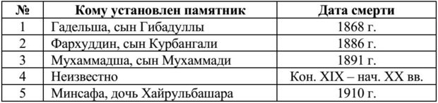 Реестр арабографичных памятников на кладбище: