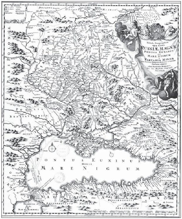 Следует перечислить северо-причерноморские «ruinae», отмеченные нюрнбергским мастером Хоманном, который работал на первого императора всероссийского Петра I и создавал карты как для Европы, так и для России, отмечая очаги культурного наследия нашего отечества.