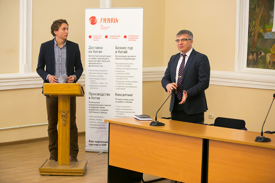 Основная деятельность компании «Фабрик» заключается в том, что они помогают предпринимателям наладить импорт и экспорт между Россией и Китаем. Одним словом, посредники. В частности, они занимаются логистикой, таможенными процедурами, поиском производителя из Поднебесной и так далее. На семинаре в Казани речь шла о многих аспектах работы — начиная от того, как нужно ставить задачу китайскому производителю, и заканчивая возможными вариантами доставки товара. Семинар, конечно – это побочная цель. Основная – это знакомство с местными предпринимателями и налаживание контакта с Торгово-промышленной палатой РТ.