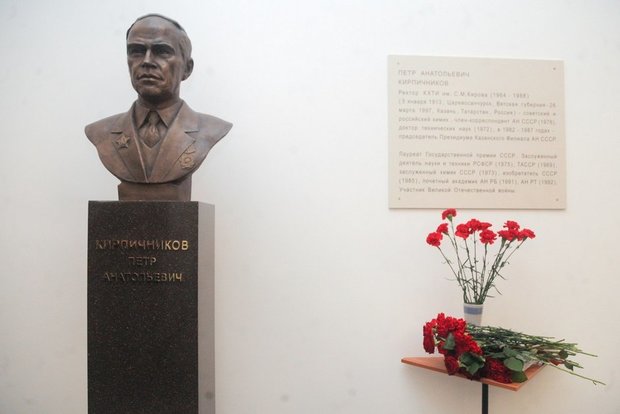 8 февраля 2021 года в главном корпусе КНИТУ-КХТИ открыли памятник выдающемуся ученому, академику, ректору Казанского химико-технологического института с 1964 по 1988 год Петру Кирпичникову. Церемонию приурочили ко Дню российской науки. Кирпичников создал научные основы стабилизации мономеров и полимеров фосфорорганическими соединениями, разработал фосфоросодержащие антиоксиданты, противоутомители, ингибиторы, стабилизаторы. Он внес большой вклад в исследование полисульфидных и уретановых эластомеров, разработал методы синтеза олигомеров с реакционноспособными функциональными группами.