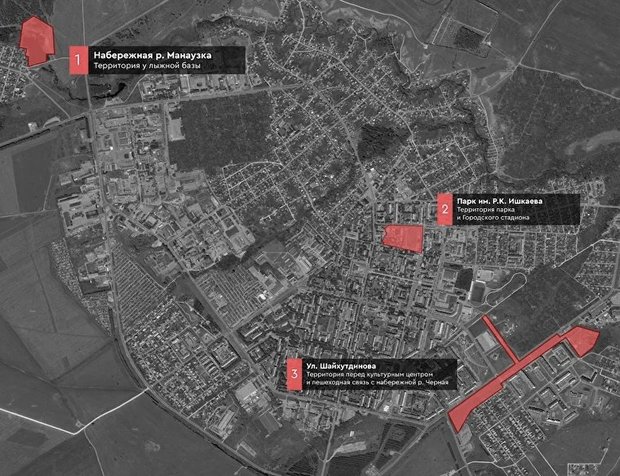 - набережная реки Манаузка на окраине города, которая входит в территорию у лыжной базы;