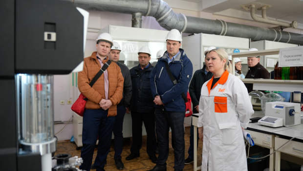 Первой точкой посещения стала лаборатория «ТАИФ-СМ», где осуществляется многоступенчатый контроль качества на всех этапах производства. Современное оборудование позволяет в круглосуточном режиме отслеживать качество выпускаемой продукции.