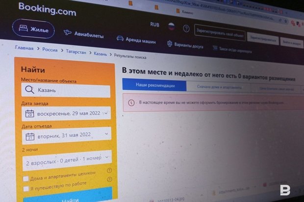 23 мая 2022 года «Реальное время» рассказало, что с уходом с российского рынка международных систем интернет-бронирования отелей (Booking.com) и частного жилья (Airbnb) казанские гостиницы реанимировали каналы продвижения услуг с помощью российских агрегаторов. Однако отельеры оказались разочарованы: в майские каникулы ни один из них не смог обеспечить 40%-ную загрузку номерного фонда, которую им стабильно приносил «Букинг», а основные продажи сделали клиентские базы и собственные сайты отелей.