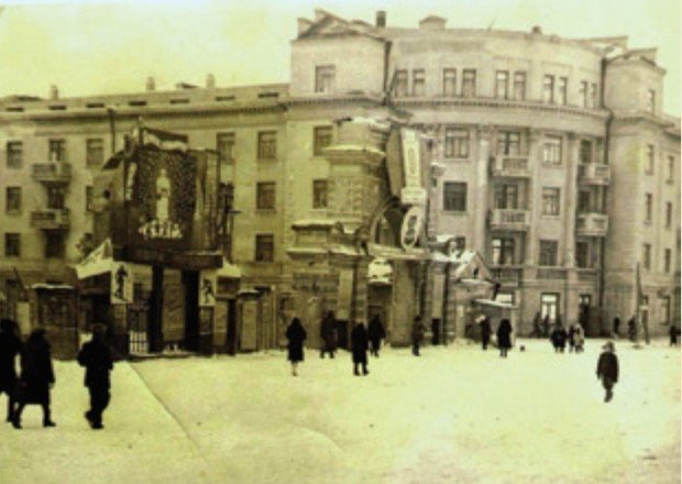 Отец снова взял фотоаппарат в январе 1945-го, за 4 месяца до окончания войны. Появился повод — рождение сына. Я родился в старой больнице (ее уже давно нет) на ул. Островского, напротив Театра юного зрителя. Эту больницу в народе называли Клячкинская. На сохранившейся фотографии видно, как сурово выглядела Казань в дни войны.
