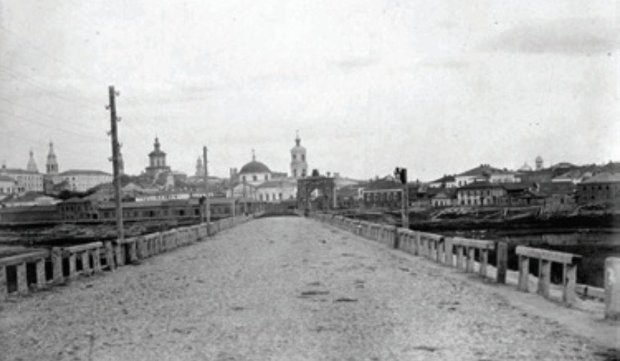 За вековую историю нашей дамбы накопилось достаточное количество ее фотографий, сделанных в «правильном» направлении. И на всех этих снимках вдали видна колокольня Успенского собора, как маяк, указывающий направление. Верные спутники, схожие судьбы! В 1956 году не стало дамбы, через 20 лет сломали Успенский собор. Очередная, ничем не оправданная потеря! Один из самых ранних снимков дамбы был сделан знаменитым казанским фотографом В.П. Бебиным в 1870-е годы. Дамба в своем детском возрасте — маленькая, узенькая — ей еще предстоит расти и расти.