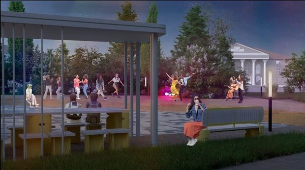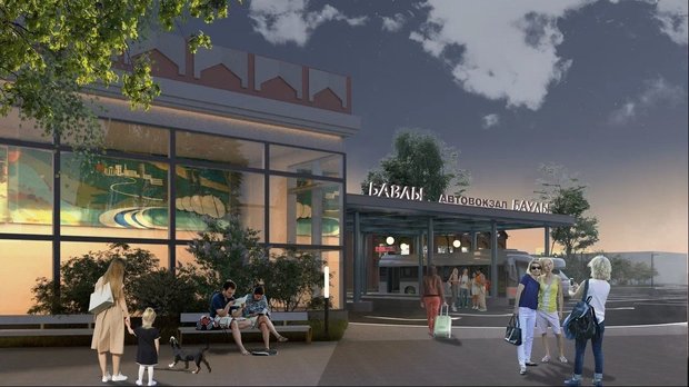 - Привокзальная площадь — здесь будет собрана информация о междугородних автобусных рейсах, туристических объектах города и района. Территория привокзальной площади включает в себя зоны ожидания, многофункциональную площадку, на которой можно устраивать ярмарки и фудкорт, а также зону для работы за столиками на свежем воздухе.
