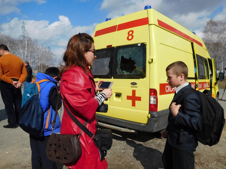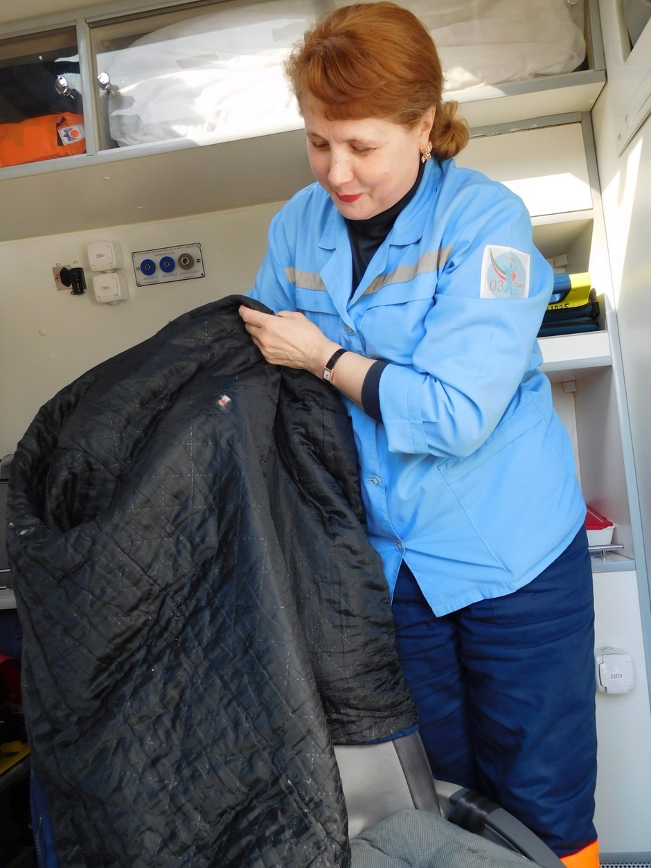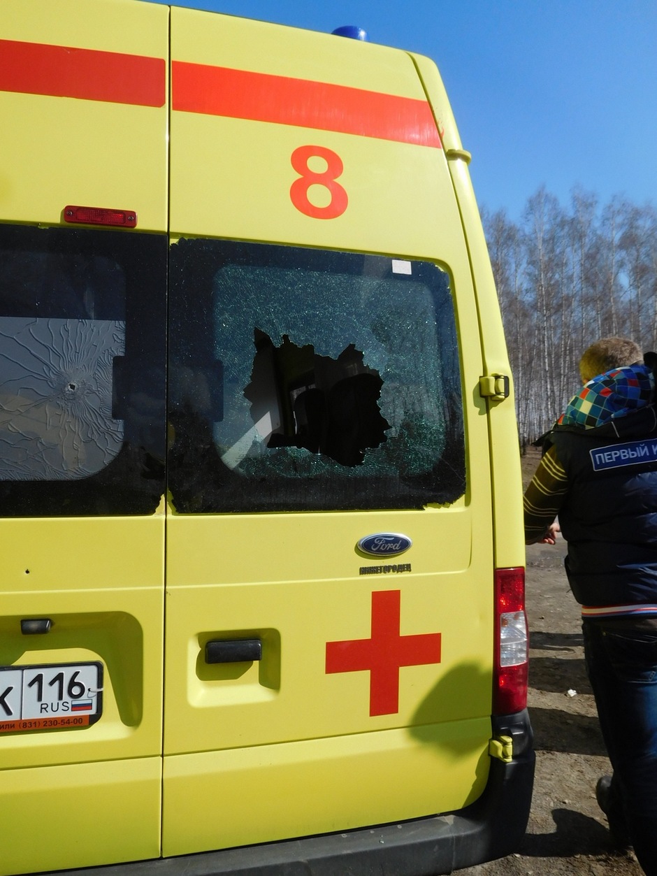 Оба задних стекла в машине скорой оказались прострелены, одно из них обрушилось. Одна из пуль, как позже обнаружили медики, прошла навылет — пробив сначала стекло, затем спинку сидения фельдшера и повешенную куртку. Сама фельдшер успела упасть на пол и осталась жива.