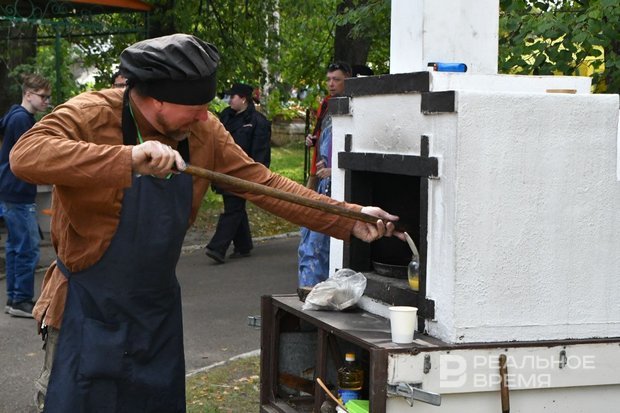 Даже печь настоящая кирпичная стоит прямо на улице, и в ней выпекают пирожки с грибами и угощают всех желающих за донаты. Но в очереди за ними придется постоять.