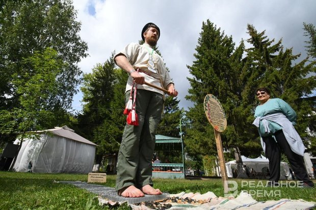 На отдельной площадке можно поучиться играть в лапту и другие народные игры. Мастер-класс проводят участники фольклорно-этнографического ансамбля «Не любо — не слушай» из Казани.
