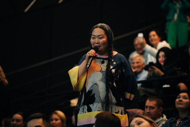 Впрочем, самые занятное общение у Кустурицы случилось с коллегами. Узбекская делегация вручила ему тарелку и тюбетейку не по размеру — и пригласительное письмо на Ташкентский кинофестиваль. Отдельным номером стало появление Валентины Романовой-Чыскыырай из Саха. Исполнительница главной роли в драме Дмитрия Давыдова «Пугало», этно-певица (Гран-при музыкального конкурса «Якутск-2000») и «энергетический практик», она сходу предложила режиссеру послушать ее пение. Потом предложила поимпровизировать.