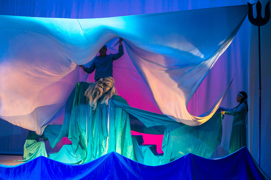 Ощущение свежести, ветра, воздуха, напитанного влагой, простора и свободы — вот атмосфера первого спектакля бурятского театра «Дочь Байкала — Ангара». Легенда о полноводных реках, о фантастическом Байкале рассказывается театром романтично и возвышенно, но с некоторой умеренной долей юмора. Текст совсем недетский, но дети понимают, проникаются, сопереживают.
