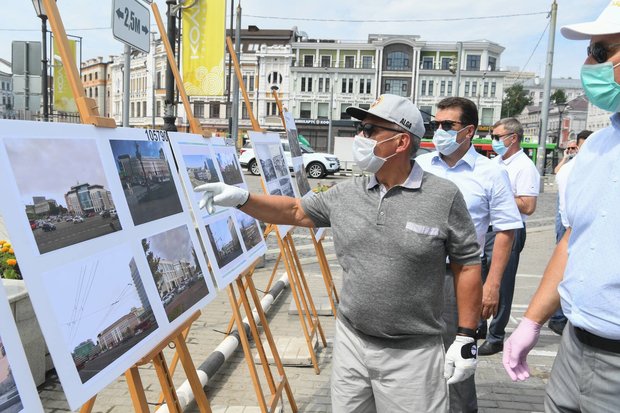 В 2021 году Минниханов трижды посещал исторический центр — раз в апреле и два раза в июле. Например, 17-го июля он осмотрел участок между ул. Хади Такташа и озером Нижний Кабан, который был выбран местом строительства нового здания Татарского государственного академического театра им. Г. Камала. К слову, пояснения давала Наталия Фишман-Бекмамбетова — тогда еще помощник Минниханова.