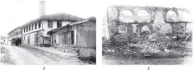 Еще Челеби говорит о мечети на базаре, перед михрабом которой похоронен «под высоким куполом обладатель благодати». Возможно, эта мечеть изображена на старой открытке, где отчетливо виден мавзолей рядом со зданием мечети (рис. 26.5), но была ли она базиличной неизвестно.