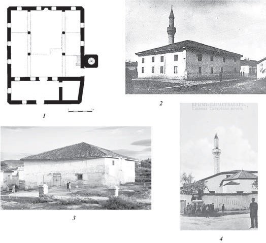 Еще одну многочисленную группу мечетей эпохи Крымского ханства составляют постройки с плоским балочным перекрытием, с четырехскатной шатровой или вальмовой крышей на стропилах. Б.Н. Засыпкин называл такие постройки