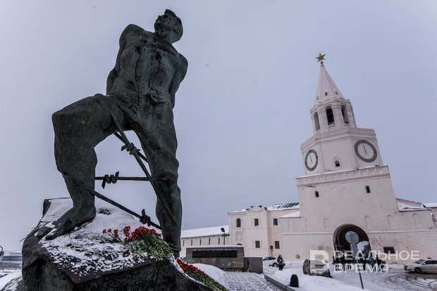 3 ноября 1966 года в Казани открыли памятник Мусе Джалилю. Он расположен у южного фасада кремля, напротив бывшего здания Городской думы и Национального музея Республики Татарстан, близ места, где в 1894—1918 годах находился памятник Александру II. В 1974 году скульптура была включена в список памятников культуры РСФСР, подлежащих охране как памятники государственного значения.