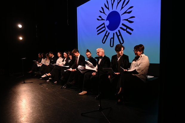 Инсценировки 12 авторов, работы которых были представлены анонимно, оценивали по пятибалльной системе 26 членов жюри. К слову, не все они досидели до конца действа, были и такие, кто покинул зал. Пьесы были представлены в необычном для театра формате. Сначала на экране появлялись одна за другой аннотации к работам. Затем актеры театра Кариева, сев в ряд на стульях в середине сцены, читали пьесу вслух по ролям. Каждая читка начинались с небольшого видеоряда. Зрителей в зале собралось немного, хотя вход в театр в этот день был свободным.