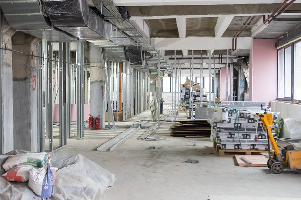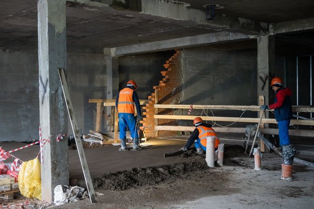 Около 70% от запланированных строительных работ уже выполнены. Рабочие утеплили фасад, заменили отопление, вентиляцию, системы водоотведения и водоснабжения. В настоящее время идет отделка помещений, монтаж потолков и напольного покрытия.