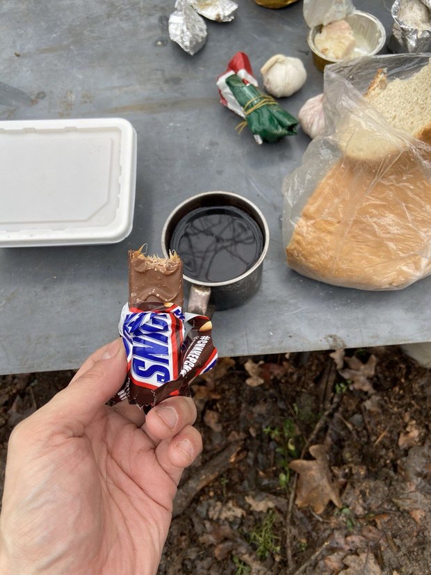Всем раздали по два «Сникерса» и сигареты. Я свои поменял на шоколадки. Сейчас у меня четыре «Сникерса». Вернее, сейчас пишу, а два уже съел, осталось два. В этот раз у меня отличное настроение. Даже страшно от этого. Часто размышляю. Вот, думаю, какой же я странный человек, променял жизнь, в которой спал в чистой теплой кровати, ходил в костюме, чистой отглаженной рубашке, на жизнь без коммуникаций в сырых окопах и грязной одежде. А потом понимаю, что люди на востоке Украины живут примерно в таких условиях 8 лет. Живут, экономя каждую каплю воды, каждый киловатт электроэнергии. Я хоть знаю, что через три месяца вернусь к нормальной жизни, а у них такой возможности пока нет. Просто ожидание неизвестно чего и неизвестно когда. Вот с этим и хочется побыстрее разобраться.