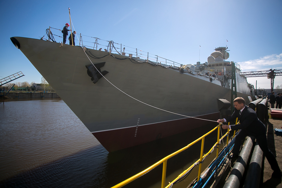 Сам ритуал спуска корабля на воду не обошелся без традиции разбивания бутылки шампанского о носовую часть корабля. Как позже рассказал заместитель генерального директора «Зеленодольского завода имени Горького» Александр Карпов, фрегат будет переведен на Черноморский флот, где будут проводиться испытания, и уже потом направится в конечную точку. Второй, как говорилось выше, повторит эту судьбу через месяц. Главное отличие второй партии кораблей от первой — наличие противолодочного комплекса.
