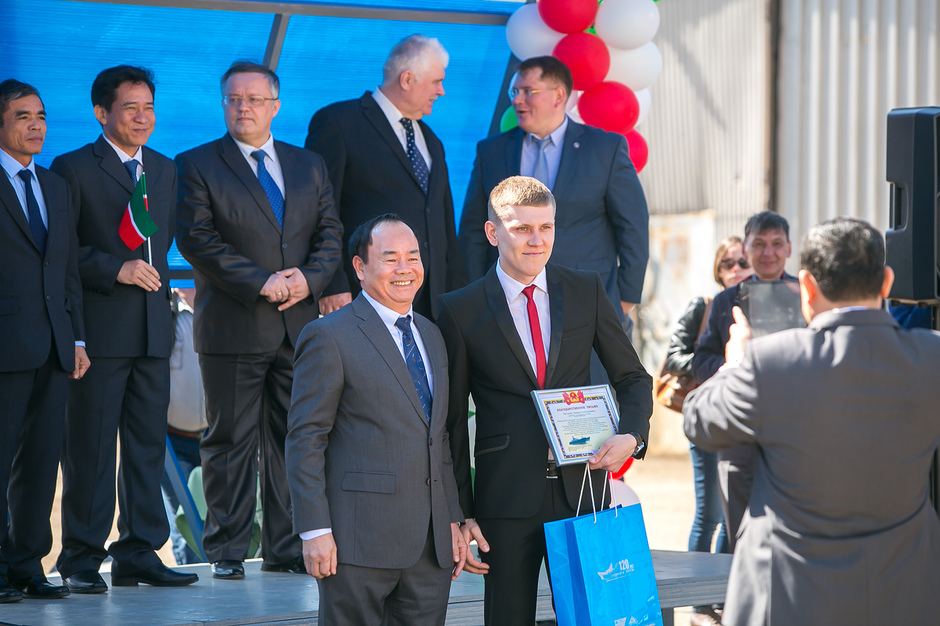 — Я хочу отметить, что между Российской Федерацией и Социалистической Республикой Вьетнам всегда были только взаимоотношения сотрудничества, взаимной поддержки и единых стратегических позиций. И сегодняшнее событие — еще одно тому свидетельство. Не менее важным является то, что вы, произведя два первых судна, сумели доказать, что эти корабли сегодня обеспечивают высокую безопасность Социалистической Республики Вьетнам, что побудило наших партнеров заказать новые суда. Это лучшее подтверждение вашего труда, большой работы проектировщиков и заводчан, которые эти суда создают, — сказал Ильдар Халиков.