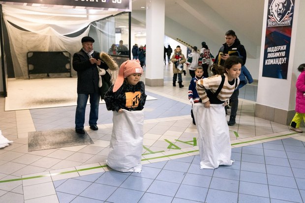 Атмосфера праздника чувствовалась уже при входе в ледовый дворец. На первом этаже болельщиков встречали сказочные персонажи Гринч, Олененок и звезда химического мира — Дмитрий Менделеев. Каждый желающий мог сделать яркое фото на память. Основное же действо развернулось на втором этаже. До начала матча гости могли принять участие в забеге в полиэтиленовых мешках и своими глазами увидеть чудеса химии — нефтехимическое шоу.