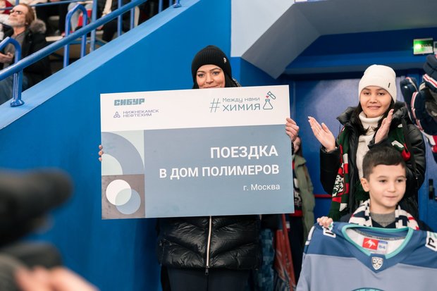 Впрочем, без подарков в этот день никто не остался. В списке призов — брендированные свитшоты, билеты на матч, календари, фирменные шайбы и плакаты с автографами любимой команды, главный приз — поездка в Москву, в центр нефтехимии России — Дом полимеров СИБУРа.
