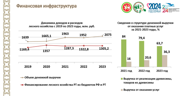- Около 937,6 млн выручили в 2023 году татарстанские лесники от реализации древесины, пиломатериалов и оказания услуг в области лесного хозяйства. При этом доля древесины в общей структуре выручки за последние 3 года значительно упала: с 84 до 63,7%. Однако лесничие сумели нарастить объемы в сфере оказания услуг с 16 до 36,3%. Глава Минлесхоза РТ Равиль Кузюров поручил подчиненным активнее работать с арендаторами лесных угодий.