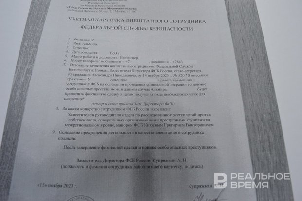 Злоумышленники действовали слаженно. При малейших сомнениях женщину старались убедить, как неоценима ее помощь в поимке особо опасных преступников. Благодарили за помощь и даже делились частью информации о ходе расследования. Так, в частности, рассказывали, что следствие охотится за неким Гофманом, организовавшем преступную схему. Параллельно с Альмирой связывались лжеследователи и даже некий «майор ФСБ». На время следствия пенсионерку сделали «внештатным сотрудником Федеральной службы безопасности», скинули повестку из «Следкома», в которой сообщали, что она участвует в «следственном действии». При этом контролировали каждый шаг, заставляли сообщать о любом выходе из дома.