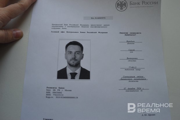 Пенсионерке действительно перезвонили несколько человек под видом сотрудников ЦБ. Сначала это был «старший специалист Центробанка» Сергей Воробьев, приславший для пущей убедительности нечто вроде «служебного удостоверения».